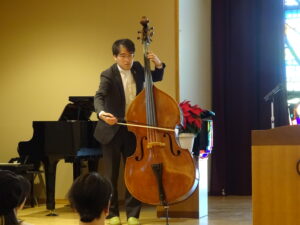 2025年度こども園で最初のクリスマス礼拝を、保護者の方々と一緒にお捧げしました!今年も、コーラス部の保護者の方々を中心に聖歌隊の歌声がホールに響き渡り、イエス様のお誕生の喜びが満たされているようでした。バイブルクラスの方々の御言葉の拝読を通して、イエス様がどのように私たち一人一人の為に、お生まれになったのかを知る良い時となりました。そして今年は、川奈聖書教会の山口光仕牧師をお招きし「この民全体に与えられる喜び」というタイトルでメッセージをいただきました。コントラバスも演奏され、二重の恵みをいただきました。神さまのひとり子であるイエス様が、私たちの希望の光となり一人でも多くの方々の心が照らされていきますようにお祈りいたします。